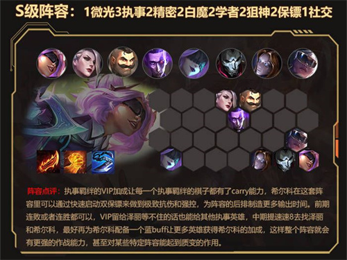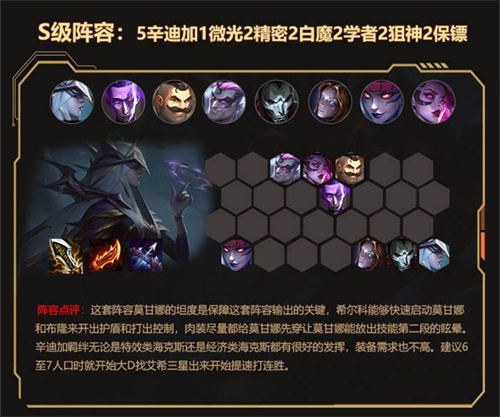 4、S级阵容:5辛迪加1微光2精密2白魔2学者2狙神2保镖