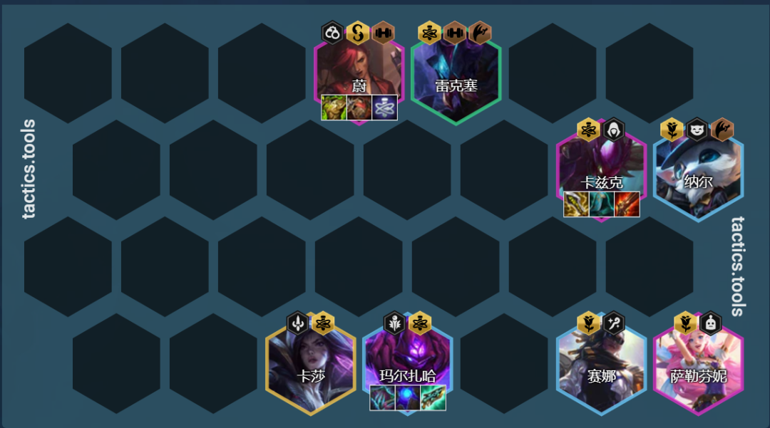 8人口去找2星螳螂+3名流羁绊。如果卡莎可以用马尔扎哈或者卡萨丁代替。其次螳螂一定要吃名流格子,如果是被吹风对位也尽量让螳螂去吃3名流羁绊。