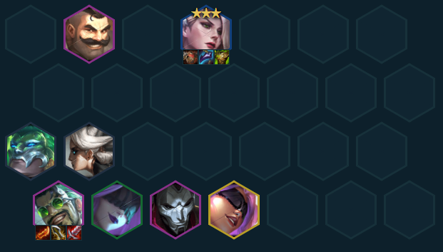 阵容组成:布隆(4)曙光(3)火男(1)青钢影(1)德莱文(4)辛德拉(2)烬(4)泽丽(5)