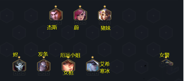 8人口成熟体阵容如下图所示,如果没来杰斯,就上个莫甘娜或者任意白魔法英雄。