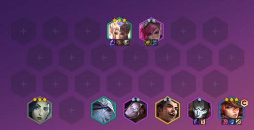 1、阵容组成:瑟庄妮、蔚、凯特琳、艾希、奥莉安娜、杰斯、烬、厄运小姐