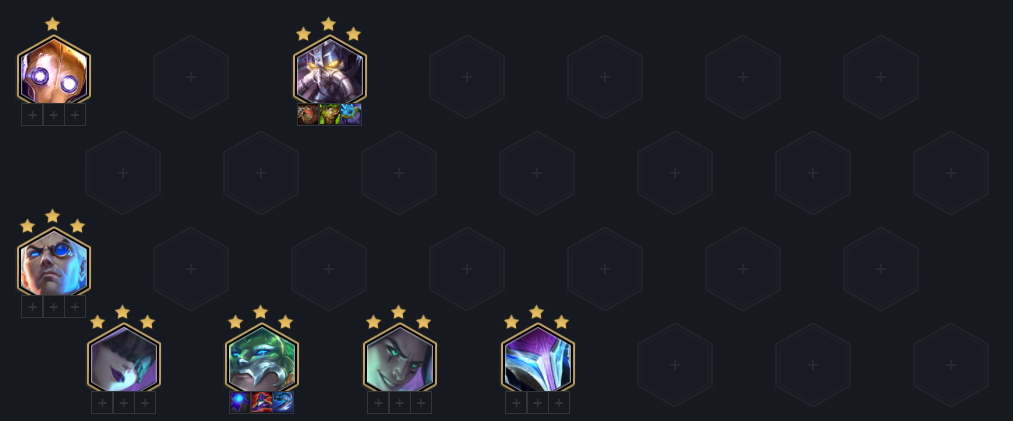 这套阵容的策略的是连败五级赌火男、卡萨丁和梦魇三张三星一费卡,二阶段不升级开3约德尔摆烂,打精致连败攒经济,2-3自然四人口,上一张卡萨丁,尽量稳血保证五连败到石头人。