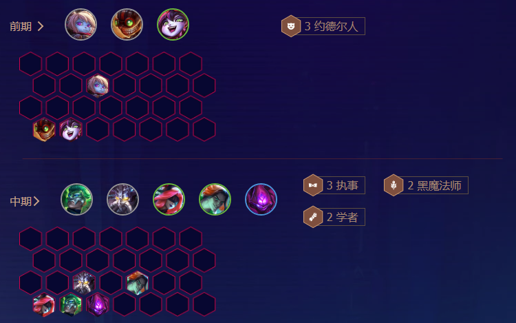 这是一套以一费卡为核心的赌狗流体系,玩法十分简单,同时阵容成型后前排很肉,且后排火男输出非常足,后期则依靠多个三星的质量碾压对方,在当前版本很容易吃分。大成型后没有太怕的阵容。