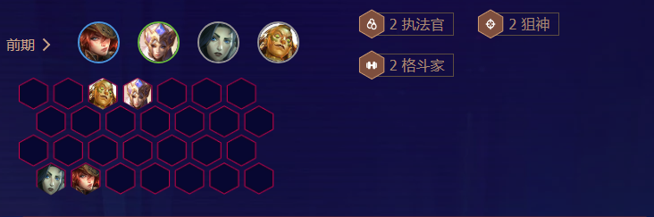 前期两斗士当前排,拿强势棋子穿女枪的装备打工,比如火男,卢锡安,飞机等均可