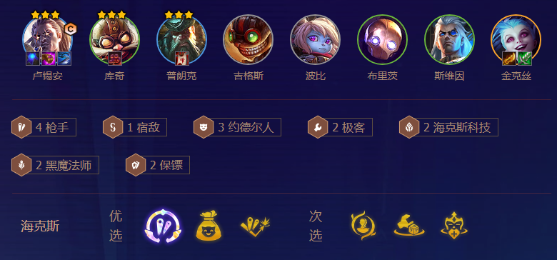 唯一天敌只有执法女枪,其余阵容2星金克丝之后都可以轻松碾压。