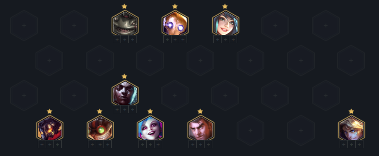 这套阵容在9人口后只要找到金克丝、塔姆、杰斯、维克托其中两枚棋子二星基本就能稳定吃分,如果4枚棋子均2星就大概率吃鸡。