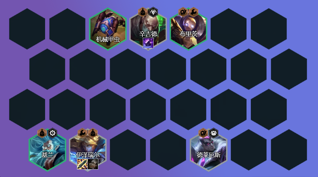 阵容方面如果有发明心/转职或白嫖萨勒芬妮开5发明最优 ,如果没有也可考虑上男刀、赛娜、纳尔、卢锡安、女枪这种2、3费打工强度强度较高的棋子,如果有4极客也可考虑上。 装备上保证电刀、传送门后开始考虑水银、冰心与正义。