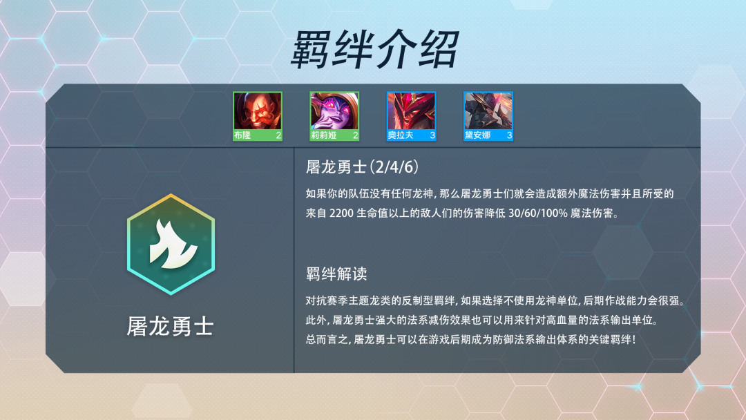 这是一个赌低费卡/也可运营的羁绊,商店每刷新5次,就一定能刷出星界龙的卡,而且还会掉落战利品法球,法球可以开出金币!游戏后期开到9星界龙的时候,法球甚至可以掉落装备散件!可以说是可玩性非常高的羁绊了~不同于约德尔人的是,星界龙不会每回合都给你金币收入,这样就不容易被其他玩家卡着你的牌,也不会每个人约德尔开局摆烂!