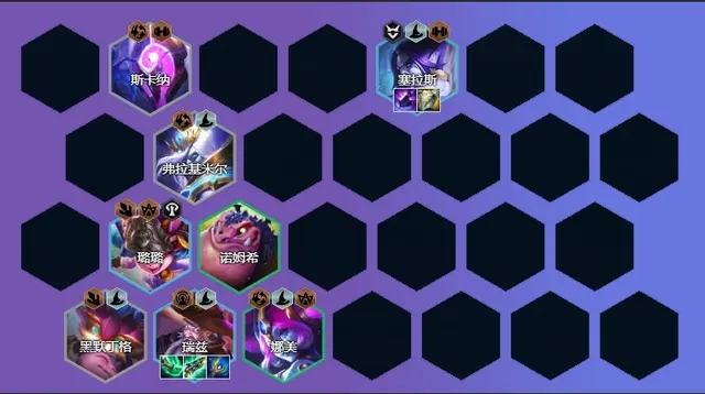 驯龙羁绊大家都比较熟悉了,2羁绊就能召唤诺姆希,诺姆希是一个高养成性的强势前排。他的坦度是非常高的,驯龙体系更多也是利用诺姆希的高坦度,来吸收伤害,进而给后期输出棋子争取更多的输出时间。