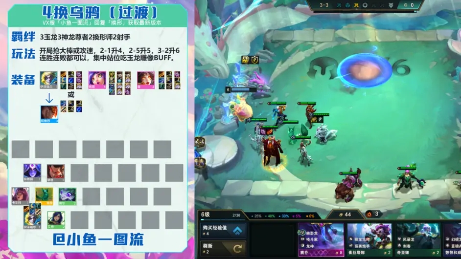 前期节奏:2-1升4,2-5升5,3-2升6,4-1升7,神龙尊者牌全抓,围绕3玉龙的雕像缩角,有6神龙就跳级上