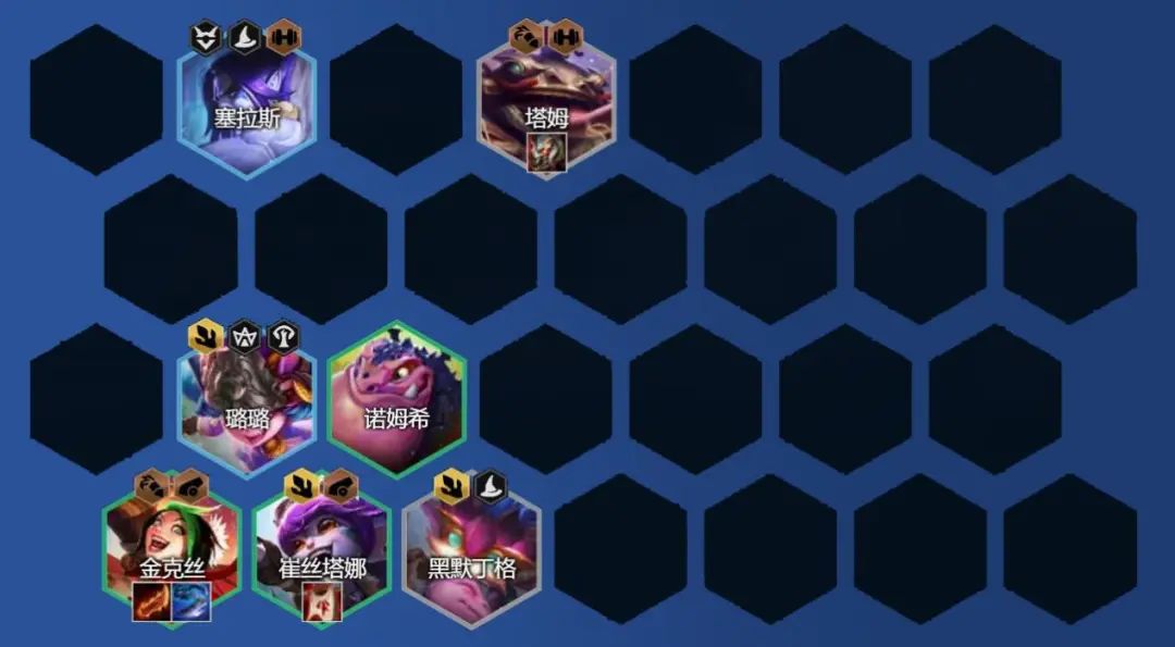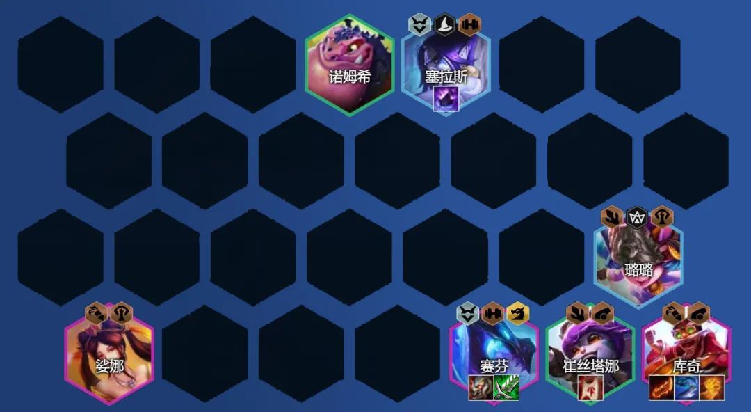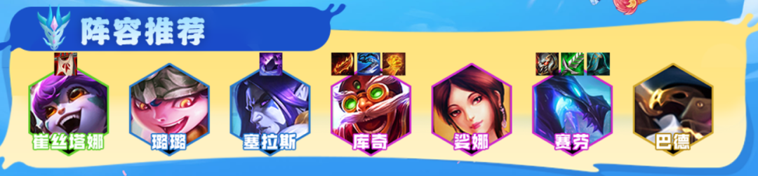 阵容组成:崔丝塔娜、塞拉斯、赛芬、巴德、璐璐、娑娜、库奇