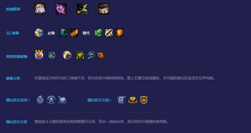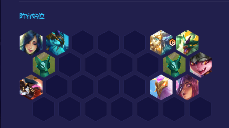 阵容是在7人口慢D三星,所以前期可以根据自己的嫖牌来选择过度阵容,斗射,护卫炮,永恩等过度都是不错的选择。,一般7人口之前不D牌,存钱到7口人梭哈找出一只石傲玉跟奥恩,其他全二星就能存钱慢D三星。沃利贝尔三星后就上8人口补露露,9人口上巴徳。