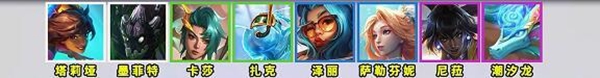 塔莉亚、墨菲特、卡莎、扎克、泽丽、萨勒芬妮、尼菈、潮汐龙、瑞兹