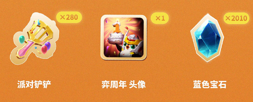 弈周年派对即将来袭!完成2个任务,即可领取[派对铲铲] *100、[快捷语嗨起来] (30 天),完成分享任务可领取[蓝色宝石] *388,活动期间最多可得[蓝色宝石] *1164