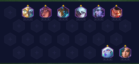 1、棋子组成:敖兴、狗熊、盲僧、亚索、瑟提、卡莎、琪亚娜、索拉卡