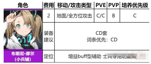 但PVE中士兵队伍通常不需要该增益,PVP中单凭她的buff也不能改变士兵队伍被大量强力角色克制的局面,只能说缺少发挥的空间。