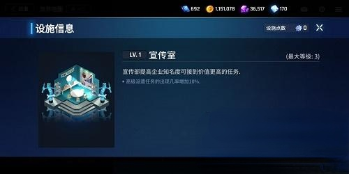 宣传室可以提升玩家高级任务的刷新概率,同时每次任务刷新的信息票消耗数量也会减少,这样玩家可以通过多次刷取任务挑战获得更多收益。