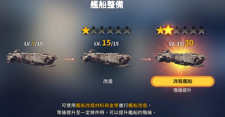 舰船整备:舰船于战场中除了成为据点外,同时还可施放具有了攻守具备的技能来辅助我方友军成员,可透过消耗舰船材料将舰船进行改造提升,即可于战场上提供友军人员强大的后勤支援。