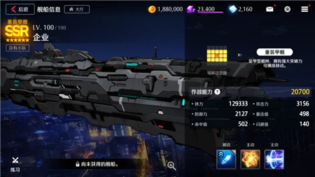 重装甲舰“企业”的被动技能能够极大幅度提升友军制裁者、机械师单位的攻击力和命中值。强化后获得的主动技能可对敌方造成大量伤害,并在一定时间内分别降低敌军的攻击力、防御力以及闪避值。