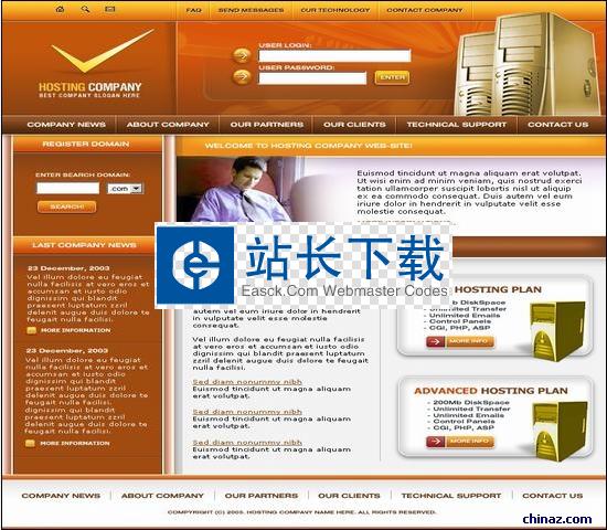 主机模板 电脑模板 html模板 英文模板 简洁模板 黄色模板 模板下载