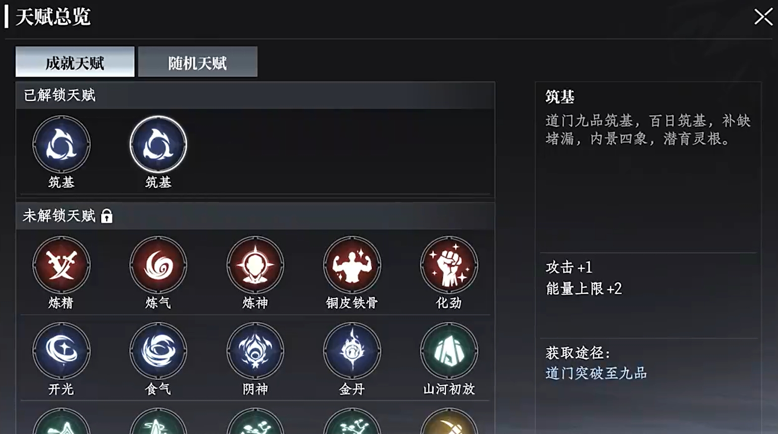 游戏里的天赋功能由成就天赋和随机天赋这两部分构成,当玩家们完成税银案的主线后,就能开启该功能。其中成就天赋主要通过完成游戏内的成就来解锁,并且每一种天赋都有十分详细的获取方法,玩家们若是在里面发现了自己所需要的天赋,可根据它的获取方法来针对性地进行解锁。