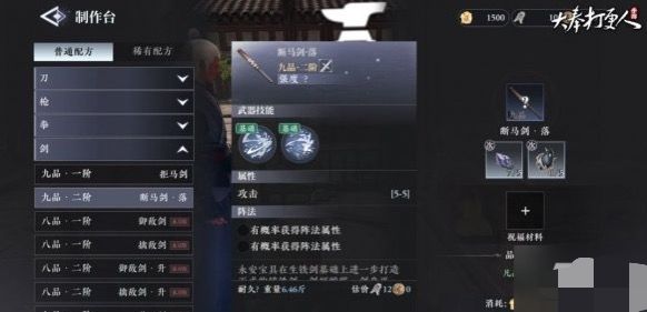 随着税银案的推进完成会解锁生产一类的副业,这时候我们就可以找到工匠孙师傅进行对话拜他为师,学习他锻造的手艺,完成系统要求的任务就可以得到基础的配方和制作手艺。配方有的我们看一下手上的材料够不够,不足的话就要去采集,基础锻造需要的矿石大家可以去藏金山采取,采集也是分为等级的,你锻炼的刀好需要采集的物品品质就更高,所以采集的等级大家也要同步跟上,如果需要特殊材料可以做指定的任务或者去商店,材料够了回到制作台开始做就OK了,还有武器拍卖行。