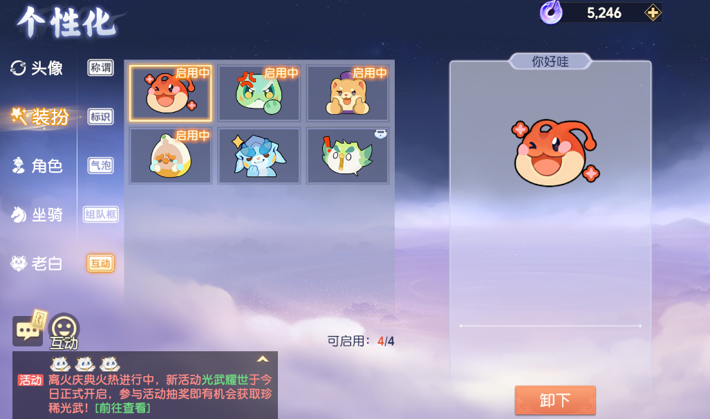 各位寻火者可在个性化中找到互动表情,和战斗的对方互动哦!