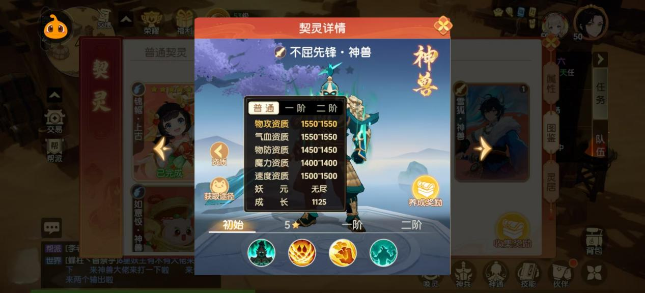 不屈先锋的气血资质和如意饺一样,为5只神兽中最高的,但是物防和魔力资质较为一般,速度排名神兽老二,属于血厚高速宠。