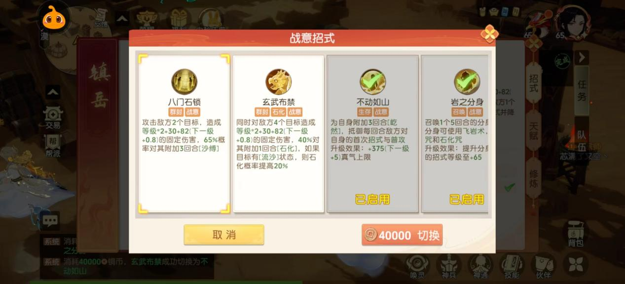 基础的5个技能不详细介绍了。小编简单讲讲作用,分别为群秒、单封招式、全封、破敌方防和自身减伤。能力非常全面。随着等级的提升,战意招式也会解锁,技能效果分别为单封两个(三回合)、召唤分身、全封四个(一回合)、自身加免伤、提速单封。