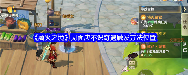 离火之境见面应不识奇遇怎么触发?游戏中有很多奇遇,大部分都是点对话就触发的,部分是在周边闲逛触发的!找到位置基本奇遇完成不难, 下面是小编给大家带来的《离火之境》见面应不识奇遇触发方法位置,我们一起来看看具体是如何操作吧!
