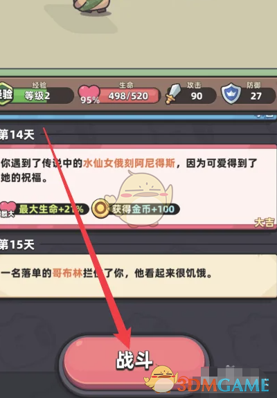 2、进入到游戏页面后,在下方点击战斗进入。