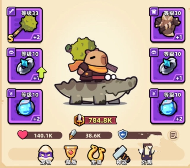 装备就位后即可进行爬塔玩法的挑战。爬塔关卡不只奖励丰富,还可以解锁神器、宠物等功能。神器作为后期增强战斗力的主要装备,宠物可以对水豚进行属性加成以及技能辅助。但这个时候还是不用急着养宠物了,关键还是要参加高活跃度公会哦。公会不只提供日常的资源,还拥有专属的商店来换取装备、物资。加入之后一定要参加捐款,累积贡献度以备之后兑换之用。