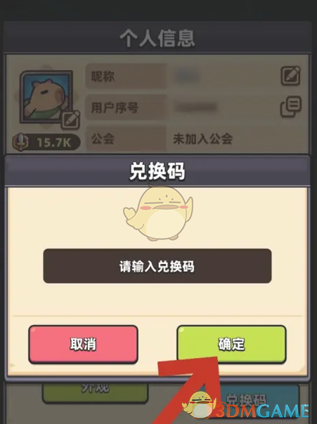 3、进入到兑换码页面,输入领取到的兑换码,检查无误,点击确定即可兑换成功。