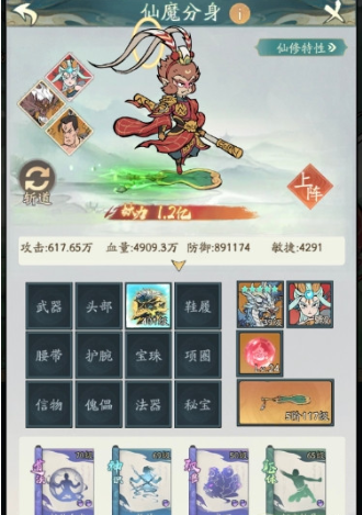 4、分身推荐三:纯闪避流派,这个流派也是配合应龙的,核心精怪是小龙女大山妖了道真,利用闪避的保命能力,斗法和冒险也是相当的强劲,了道真的回血可以上更多的输出精怪和神通,去增加应龙的伤害。在遇到抗反击的冒险怪物,用它去克制突破。