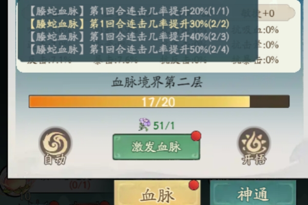2、激发血脉,提升血脉境界等级,便可能获得更高等级的灵髓,提升本身的领悟能力。