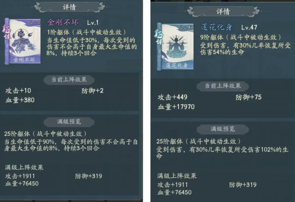躯体:推荐金刚不坏或者莲花化身,保命。要叠伤害就用大邪魔。