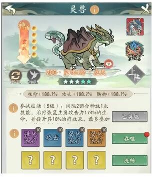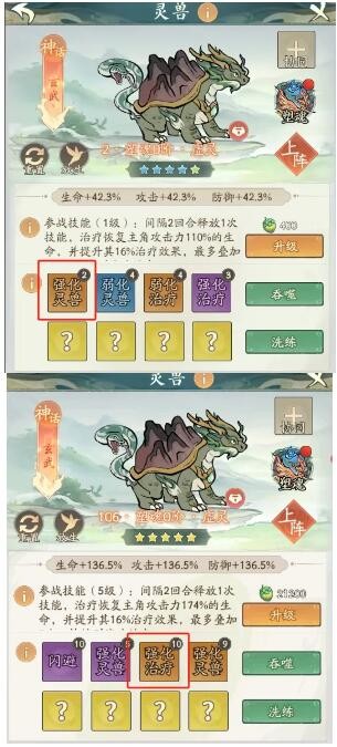 1、玄武的灵兽技能最好是先洗出【强化治疗+强化灵兽】,再看第三个技能出弱灵还是弱疗,先出弱灵就追双弱灵,弱疗就追双弱疗。一定要堆同一个属性,才能打出压制效果,太均衡反而会一无是处。
