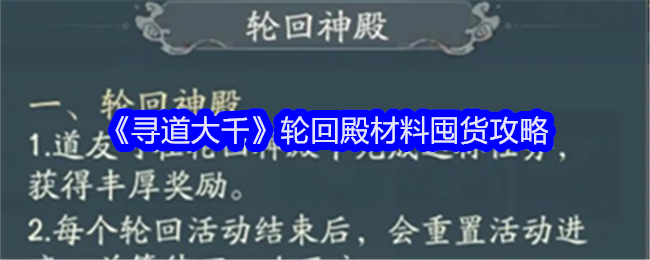 寻道大千轮回殿材料怎么囤?寻道大千游戏对于平民来说是一个需要慢慢养成的游戏,那么想要玩好这款游戏,轮回殿是必不可少的一个游戏环节,下面是小编给大家带来的《寻道大千》轮回殿材料囤货攻略,感兴趣的小伙伴们一起来看看吧。