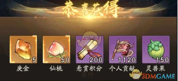 获得个人贡献最终还是要兑换商店资源的,能兑换的比较重要的资源有桃子、瓶子、玄黄果、悟道石!