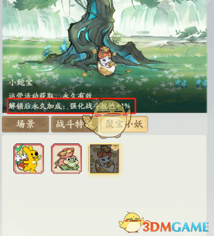 在幻境阁中有皮肤切换的地方,在这次新春活动的战令中,有一个聚宝小妖皮肤,还有属性加成!