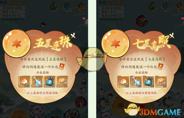 奖励内容:40仙桃,100仙玉,10净瓶水,5橙色塑魂花