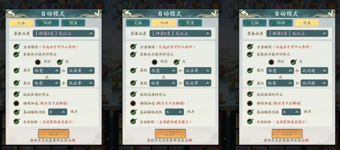 暴击流:打异兽入侵、妖邪或者镇魔的暴击流,当然九幽、遗迹只需要切换一下配置;