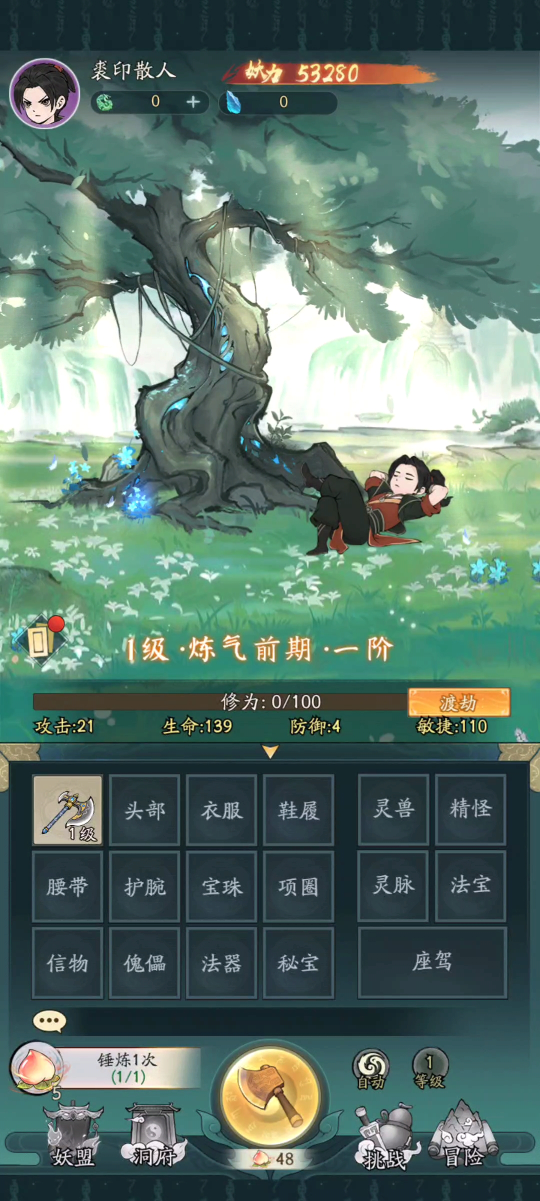 4、化神之前装备全部任意,不用固定属性,因为等级升的太快了,你要是固定属性,会导致妖力提不上去,卡主线,最好在化神中后期开始走流派,比如闪避,连击,眩晕反击这种。