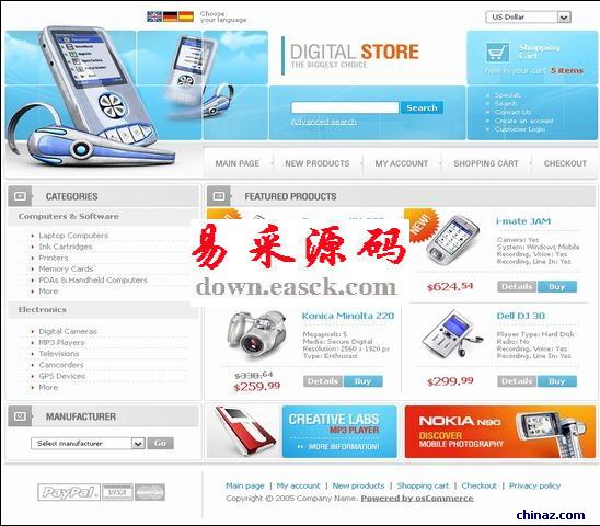 电子产品网上销售模板电子产品网上销售模板是一款网上商城电子商务网站模板下载。