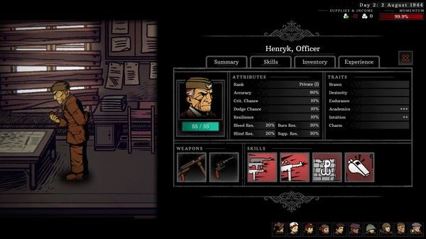 基于回合制的战术rpg,具有不同类别的角色,并且在沉浸式二战环境中具有技能和资源管理