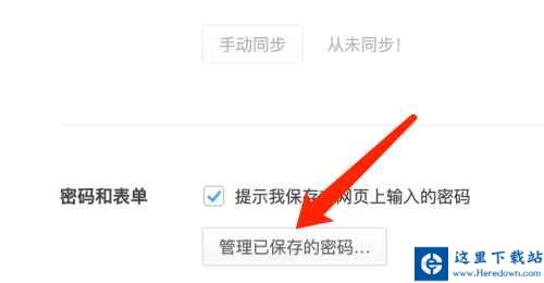 第二步:在个人资料页面,点击管理已保存的密码按钮。