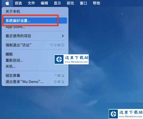 第一步:在开始菜单列表,选择【系统偏好设置】选项。