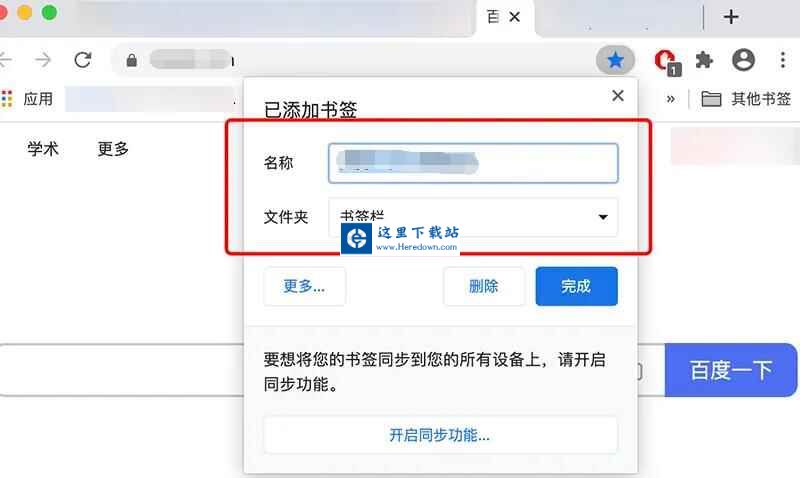 然后,在弹出添加书签的窗口中,可以修改名称