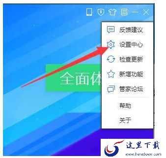 2、然后在弹出的拉选项列表选择“设置中心”并打开,如下图所示。