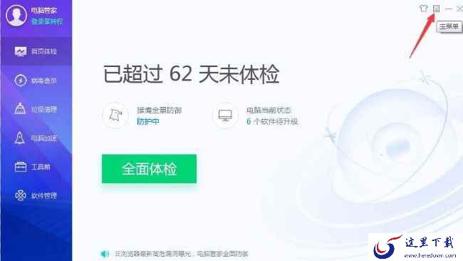 1、首先打开腾讯电脑管家软件,点击右上角的三条横线图标,如下图所示。